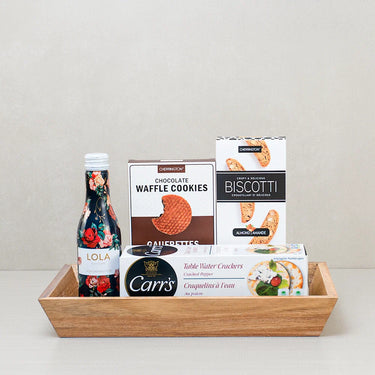 This Christmas, add a sparkling touch of holiday cheer with the Mini Rosé & Gourmet Snacks Basket. Inside this delightful gift, you’ll find a mini bottle of sparkling rosé, perfect for toasting the holidays. It’s paired with a delightful assortment of festive treats, including sweet almond biscotti, savory cracked pepper water crackers, and decadent chocolate waffle cookies. This basket is a wonderful way to send Christmas wishes to a mom, sister, or best friend, and it makes for a perfect Secret Santa or stocking stuffer. To make it a truly unforgettable holiday surprise, you can customize the basket with additional wine, liquor, or gourmet snacks.