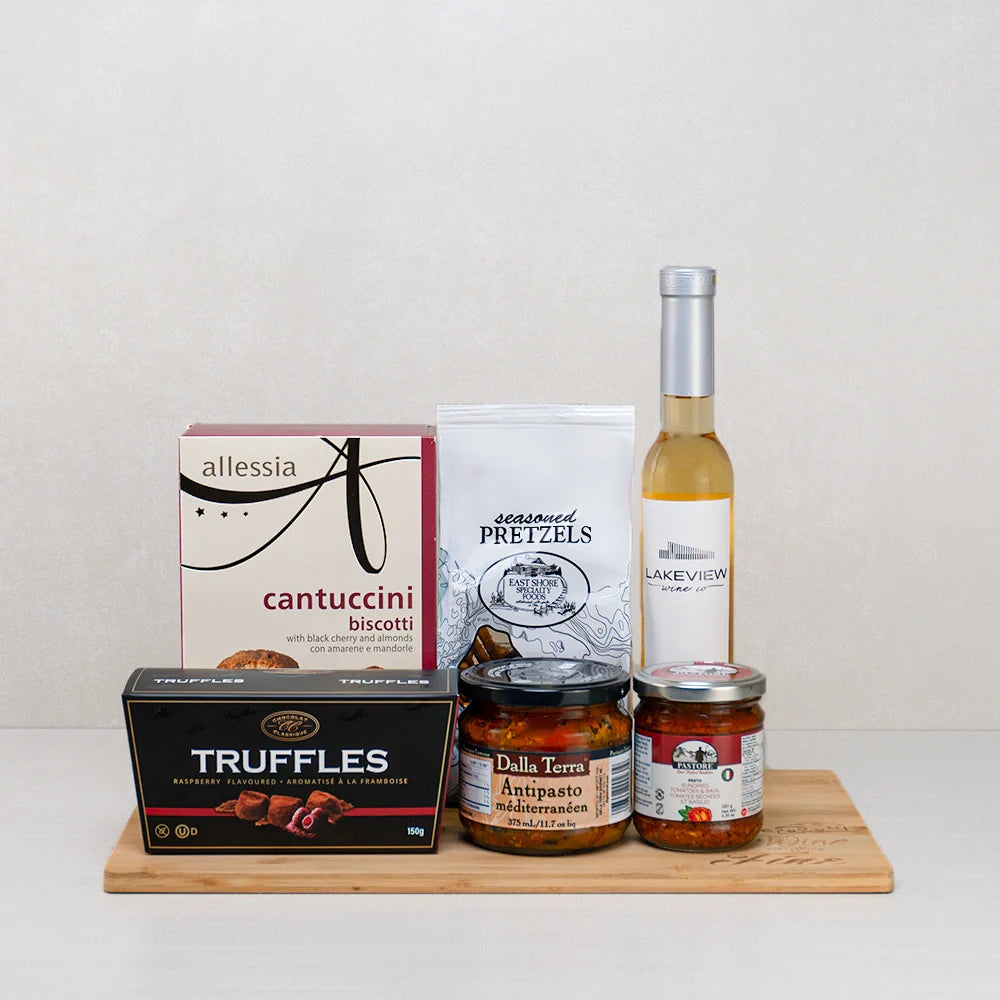 Bottle of Vintage Icewine (200ml) - This gift set includes a bottle of Vintage Icewine from Ontario, Canada, offering sleek balance with notes of mango, pear marmalade, golden raisin, and mushrooms. Perfectly paired with fresh fruit, blue cheeses, or foie gras.
