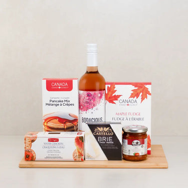 • The Flavors of Forever Basket is a holiday gift basket meant to bring warmth and joy to the table. A bottle of rosé wine sets the tone. Creamy brie, crisp crackers, and savory pesto create a delicious balance of flavors. Sweet maple fudge and a complete pancake mix make it easy to enjoy a festive holiday breakfast with loved ones. This basket is great for parents, grandparents, siblings, in-laws, or any hostess who deserves something special. You can further customize it with gourmet snacks, wine, beer, or champagne to make this gift basket truly unforgettable.